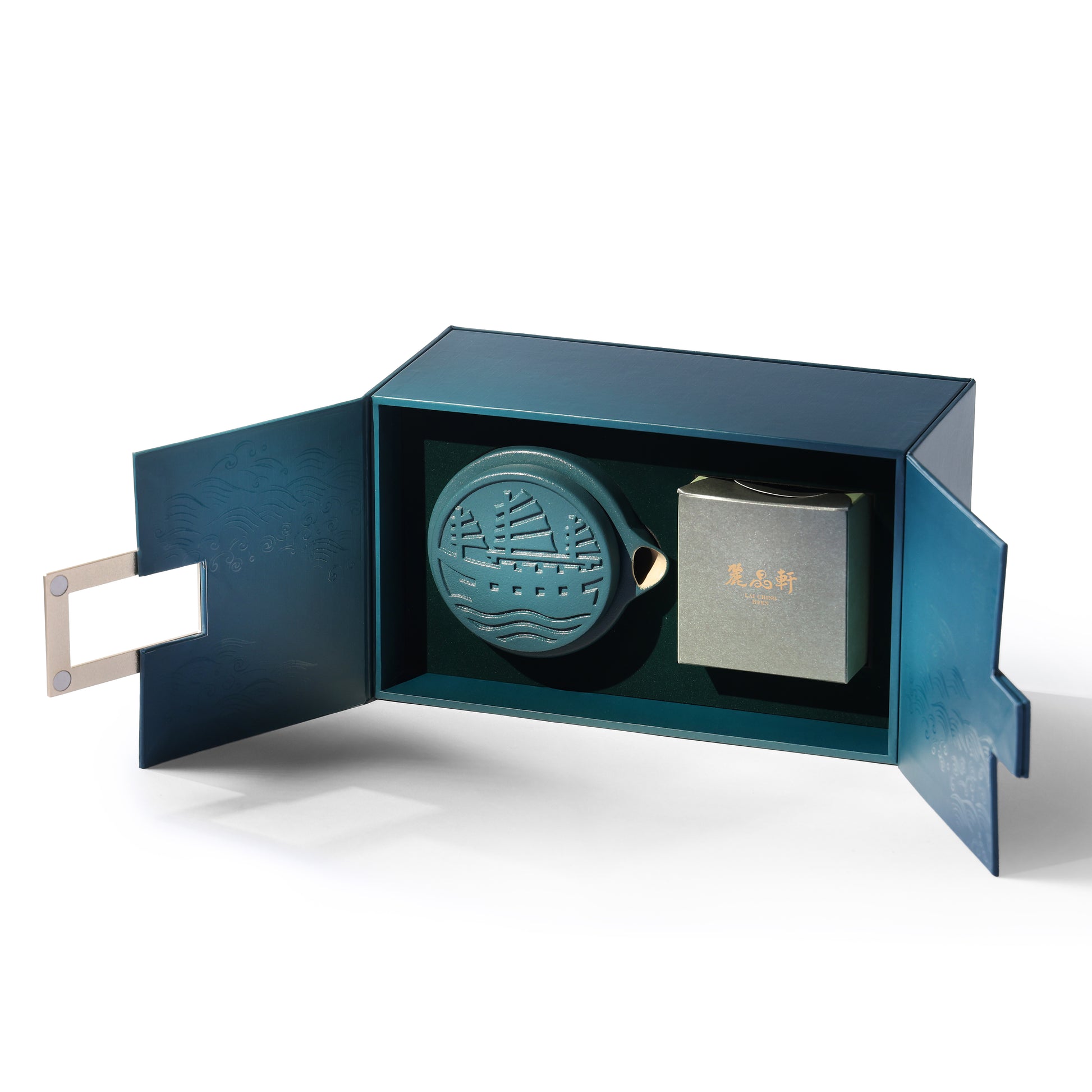 这款茶具套装礼盒以传统香港红帆船的柔美剪影为设计灵感,精美的包装上鲜艳的翡翠色彩让人联想起波光粼粼的维多利亚港。这套精致的茶具套装配有一个小巧的茶壶和茶杯,让您可随时随地品鉴香茗。套装同时配有优质茉莉花茶叶,芬芳怡人的茶香让您在繁嚣生活中寻获片刻宁静。