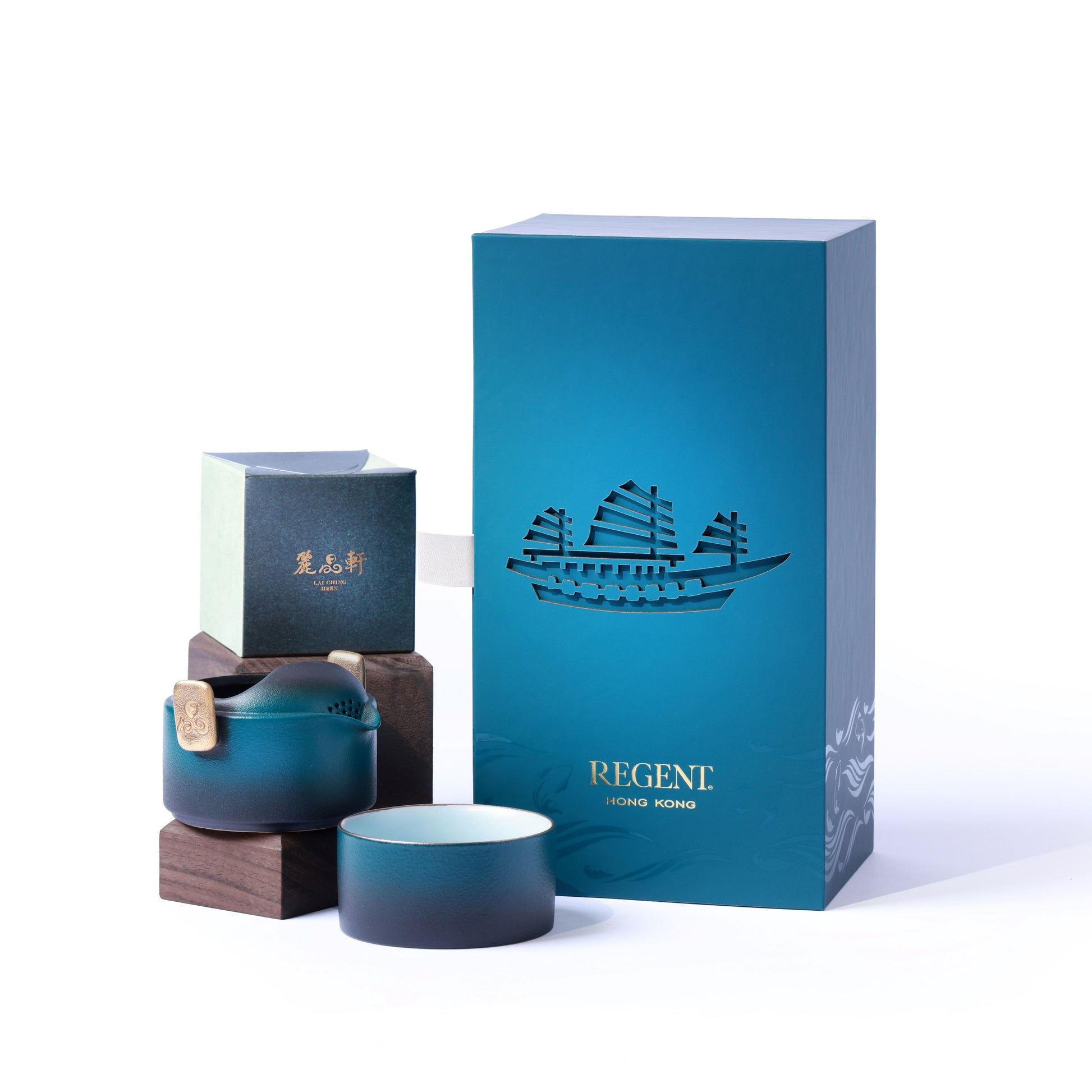 這款茶具套裝禮盒以傳統香港紅帆船的柔美剪影為設計靈感,精美的包裝上飾有細緻紋理,鮮豔的翡翠色彩讓人聯想起波光粼粼的維多利亞港。這套精緻的茶具套裝配有一個小巧的茶壺和茶杯,讓您可隨時隨地品鑑香茗。套裝同時配有優質茉莉花茶葉,芬芳怡人的茶香讓您在繁囂生活中尋獲片刻寧靜。